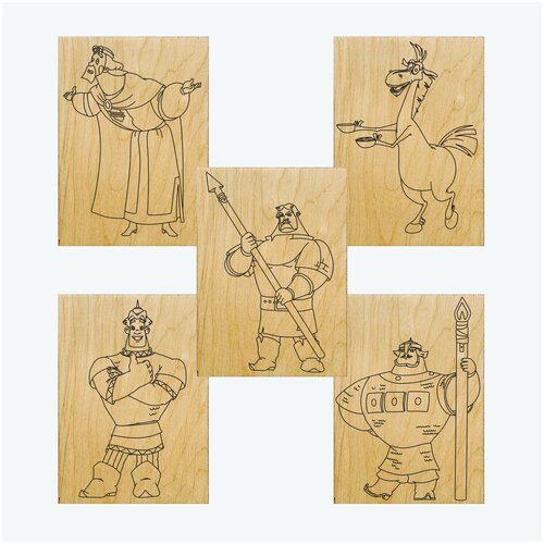 Набор досок для выжигания и рисования "Три богатыря", формат А5, комплект 5 шт. 15х21 см