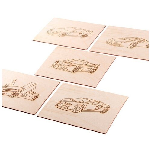Набор досок для выжигания и раскраски "Автомобили", толщина 3 мм, комплект 5 шт.