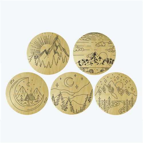 Набор дощечек для выжигания и рисования "Природа", комплект 5 шт. 14,8х14,8 см