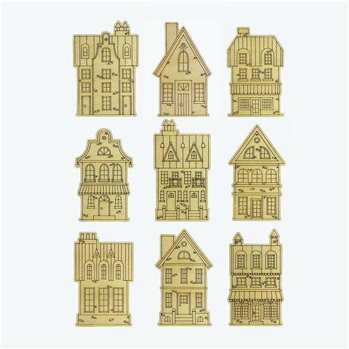 Заготовки для декорирования "Домики" STOUTWOOD, комплект 9 шт., толщина 3мм., 5,5х8 см.