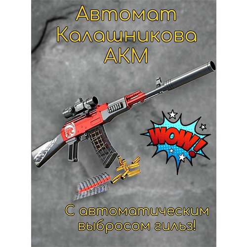 Детский автомат Калашникова АК 47 (красный) с глушителем, оптическим прицелом и выбросом гильз (92 см), мягкие пульки и присоски