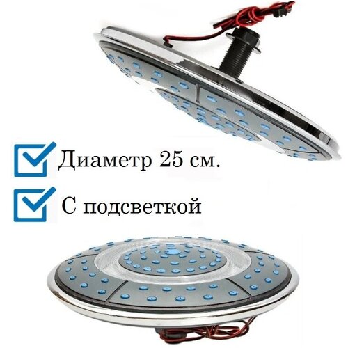 Верхняя лейка с подсветкой для душевой кабины (тропический душ) диаметром 250мм. цвет хром