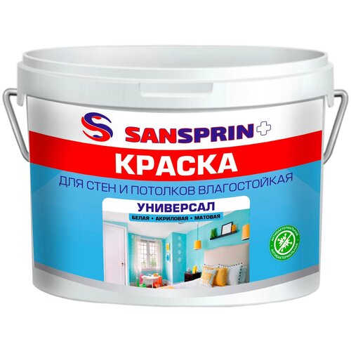 Краска ВД "Сансприн Плюс" для стен и потолков влагостойкая Универсал 5кг