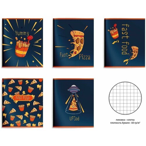 Тетрадь общая А5 на скрепке 48 листов клетка офсет (выборочный лак) Ufood Ассорти (26909) (10 шт.)