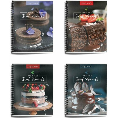 Тетрадь общая А5 на гребне 96 листов клетка офсет лак Сладкие тортики Ассорти (27632) (5 шт.)