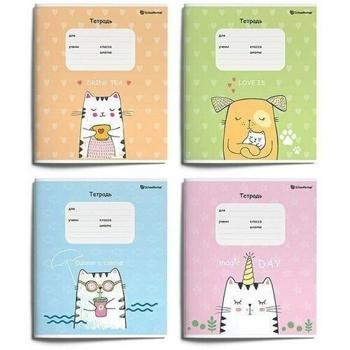 Тетрадь 18 листов А5 на скрепке клетка офсет(мелованная картонная обложка) Жизнь котиков Ассорти (25157) (20 шт.)