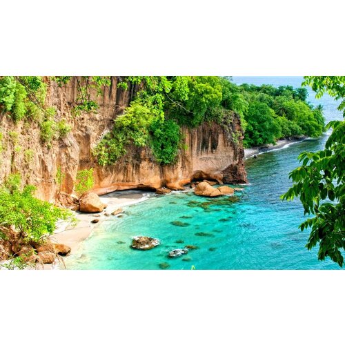 Постер на экокоже 50x70 LinxOne "Скалы океан пляж secret" интерьер для дома / декор на стену / дизайн