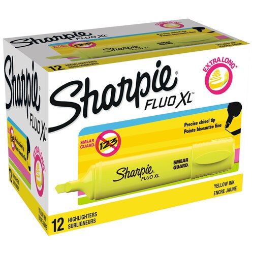 Текстовыделитель Sharpie "Fluo XL" желтый, скошенный, 0,75-5мм, 12 шт. в упаковке