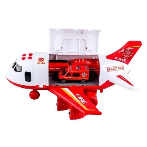 Набор транспорта "Самолёт: пожарные" (30х28х25 см, 3 маш., свет, звук, с ручкой)