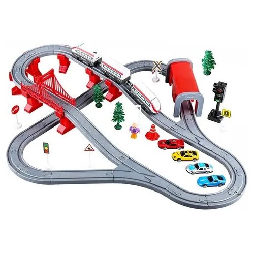 Игровой набор Ou Qi "Железная дорога: пригород" (77х66 см, 92 дет., поезд, машины, звук)