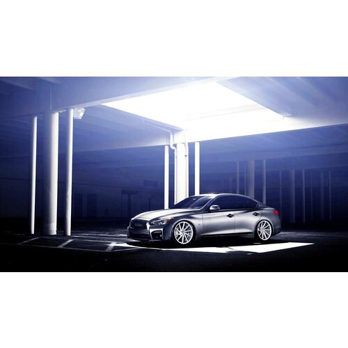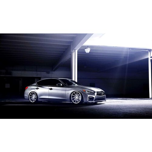 Картина на холсте 50x70 LinxOne "Infiniti silver vossen wheels Q50S" интерьер для дома / декор на стену / дизайн