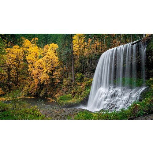 Постер на экокоже 60x90 LinxOne "США Silver Falls Осень" интерьер для дома / декор на стену / дизайн