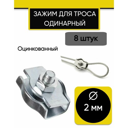 Зажим для троса 2 мм, одинарный Simplex, оцинкованный, 8 штук