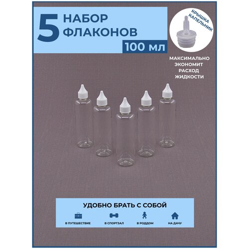 Флакон с крышкой флип-топ 5 шт./ 100 мл / дозатор / набор / дорожный / косметический / баночки/ тюбики / для путешествий / в роддом