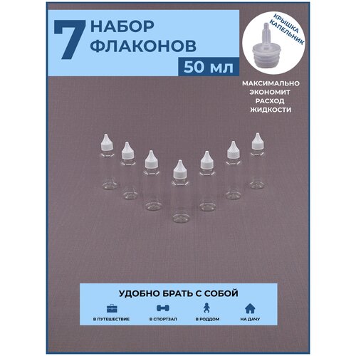 Флакон с крышкой 7 шт./ 50 мл / набор / дорожный / косметический / баночки/ тюбики / для путешествий / в роддом