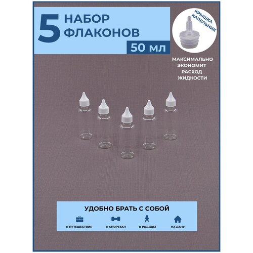 Флакон с крышкой 5 шт./ 50 мл / набор / дорожный /косметический / баночки/ тюбики / для путешествий / в роддом