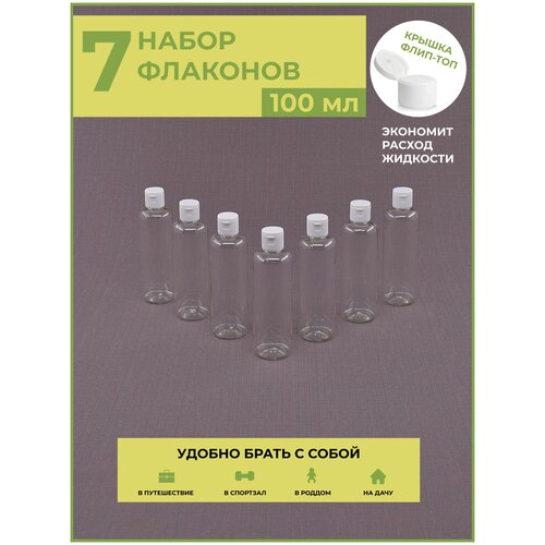 Флакон с крышкой 7 шт./ 100 мл / набор / дорожный / косметический / баночки/ тюбики / для путешествий / в роддом