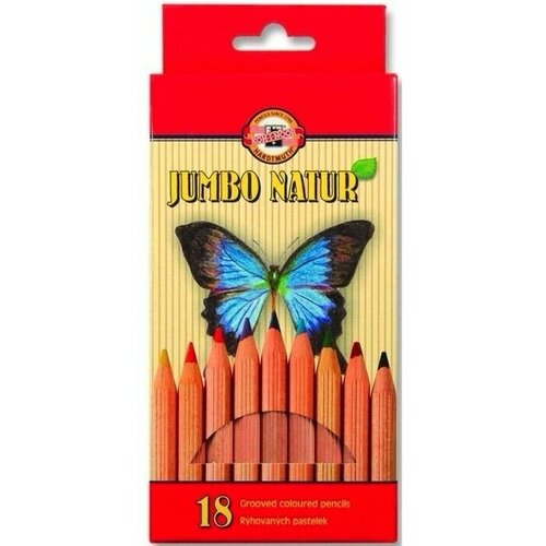 Цветные карандаши KOH-I-NOOR HARDTMUTH Jumbo Natur, толстые, шестигранные, 18 цветов