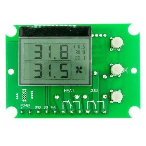 Цифровой встраиваемый термостат с выносным датчиком, -55°C.+125°C, 15А, ультра-яркий зеленый