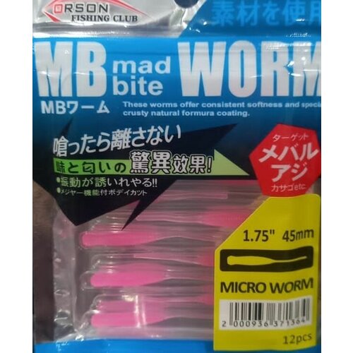 Приманка силиконовая мягкая Orson MB Worm 1,75 45мм розовый (12шт)