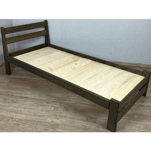 Кровать односпальная Классика Компакт сосновая со сплошным основанием, цвет темный дуб, 200х80 см
