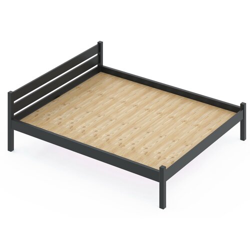 Кровать двуспальная Классика из массива сосны со сплошным основанием, 190х140 см (габариты 200х150), цвет антрацит
