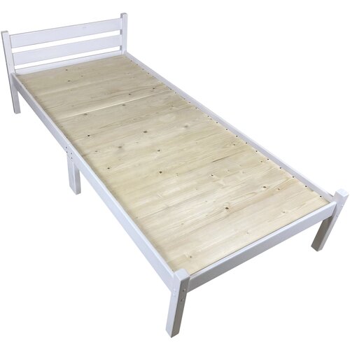 Кровать односпальная Классика Компакт сосновая со сплошным основанием, белая, 200х100 см