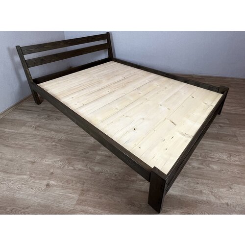 Кровать двуспальная Мишка усиленная из массива сосны со сплошным основанием, 200х160 см (габариты 210х170), цвет венге