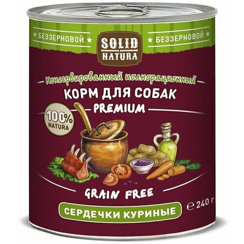 Влажный корм для собак, сердечки куриные Solid Natura Premium, 240 г