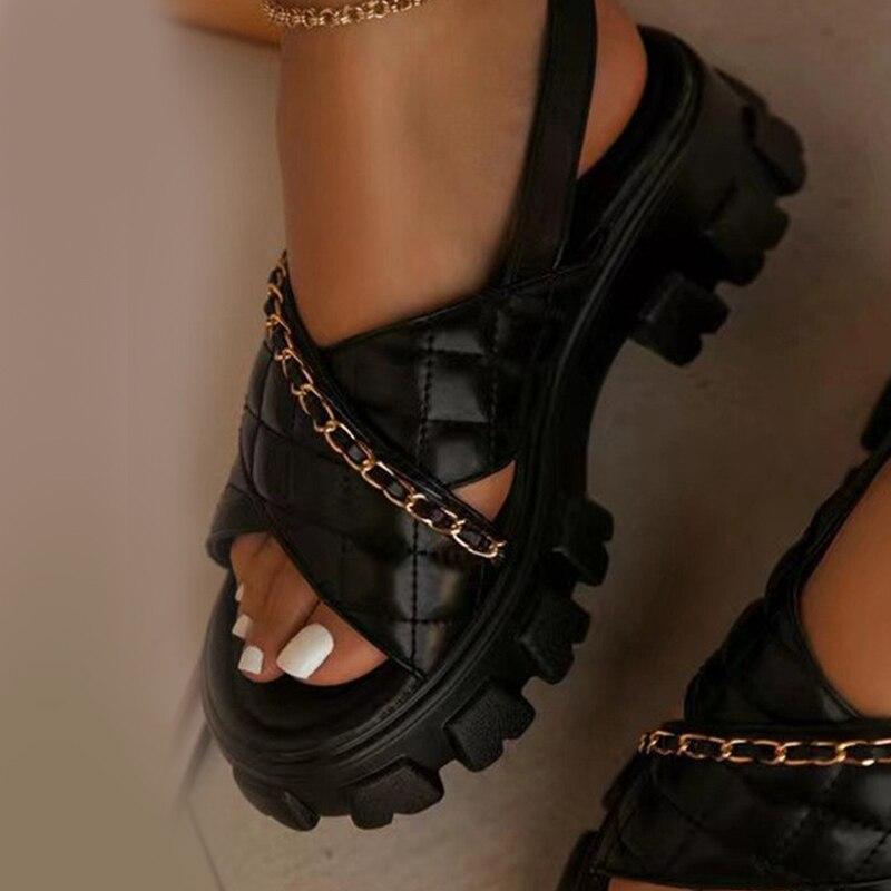 Sandale Femme Низкий каблук Платформа Обувь Сандалии Назад Ремешок Sandalias Mujer Verano2022 Белый Sapatos Femininos Solid Sandalen Dames