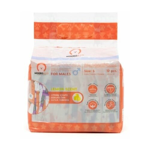 Подгузники для кобелей, индикатор влажности, лимон, S, 12шт