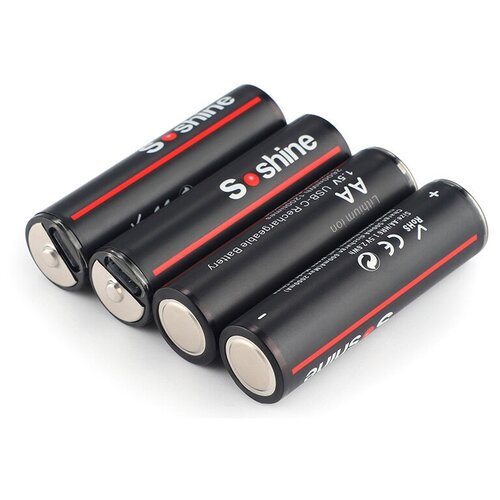 Комплект из 4 аккумуляторов Soshine AA (1.5 В, USB-С ЗУ, 1733 мАч / 2600 мВтч) со встроенной USB-C зарядкой