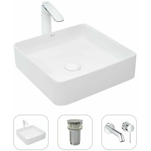 Готовое решение: раковина накладная Weltwasser Elbach 2179, донный клапан Ravak и смеситель Grohe, ширина умывальника 40 см, белый цвет