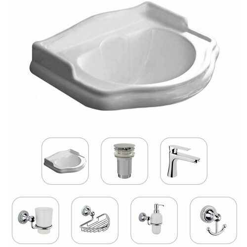 Готовое решение: раковина подвесная/встраиваемая сверху Kerasan Retro 1033, донный клапан Ravak, смеситель Grohe, аксессуары Fixsen, 41 см, белый цвет