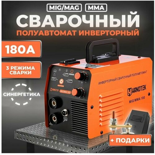Компактный инверторный сварочный аппарат полуавтомат Handtek MIG-180, 180А, MIG MMA, без газа, 60% ПД, 85% КПД IGBT транзисторы