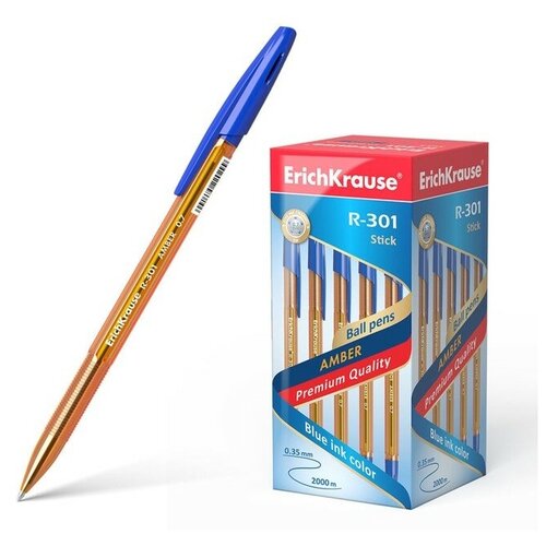 ErichKrause Ручка шариковая ErichKrause R-301 Amber Stick, узел 1.0 мм, чернила синие, длина линии письма 1000 метров