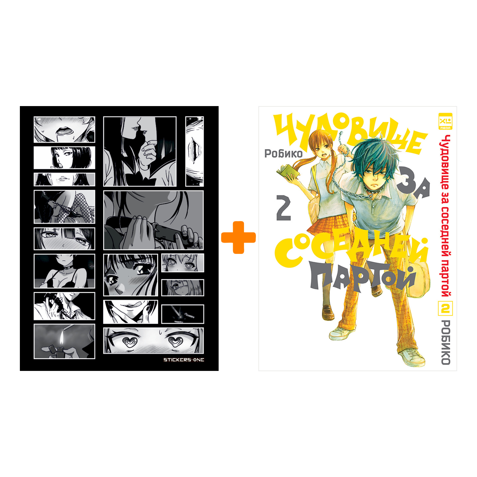 Набор Манга Чудовище за соседней партой Том 2 + Стикерпак Japan Black