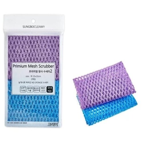 SUNG BO CLEAMY Мочалка-сетка Premium Mesh Scrubber для мытья посуды (жесткая) (25х20см)х2шт.