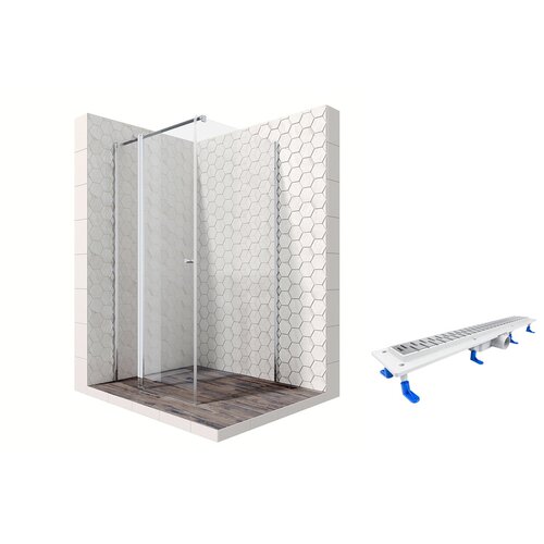Комплект душевого ограждения (перегородка) со свободным входом с линейным трапом Ambassador Walk-in 15031108-ST10, с EasyClean, 120 х 25 см