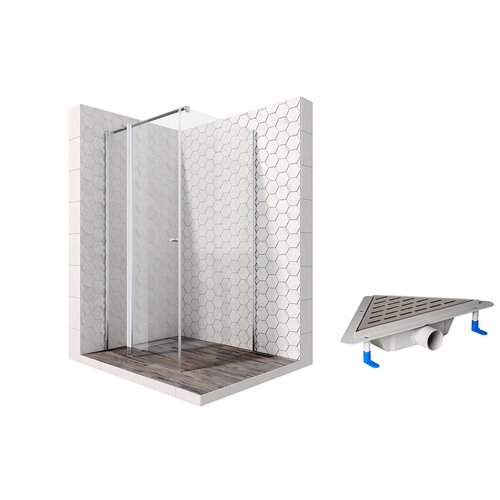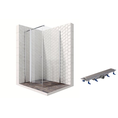 Комплект душевого ограждения (перегородка) со свободным входом с линейным трапом Ambassador Walk-in 15031108-ST5, с EasyClean, 120 х 25 см