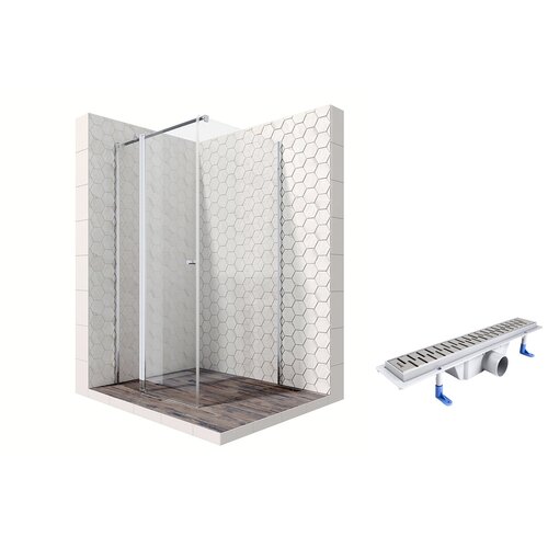 Комплект душевого ограждения (перегородка) со свободным входом с линейным трапом Ambassador Walk-in 15031105-ST10, с EasyClean, 90 х 25 см
