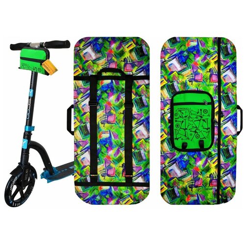 Чехол для перевозки, для хранения складных самокатов c колёсами 170-210 мм, рюкзак для детских трехколесных самокатов 90x37 см (черный с зеленым)
