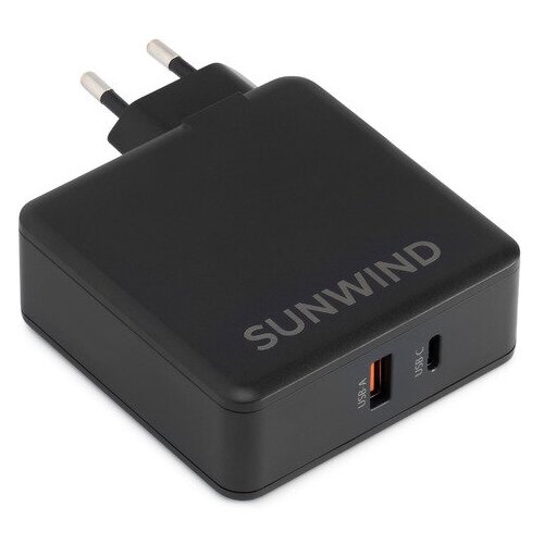 Сетевое зарядное устройство, SunWind, блок для зарядки, USB + USB type-C, 65Вт, 3.25A, черного цвета