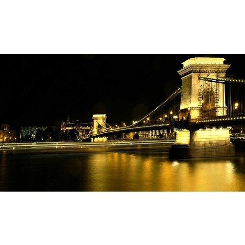 Картина на холсте 60x100 LinxOne "Chain Bridge landmark Hungary" интерьер для дома / декор на стену / дизайн