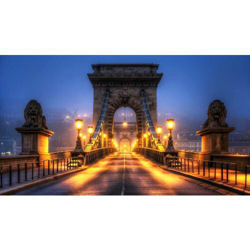 Картина на холсте 60x100 LinxOne "Chain Bridge Budapest Hungary" интерьер для дома / декор на стену / дизайн