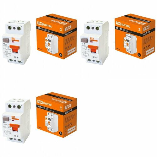 Выключатель автоматический TDM Electric ВД1-63 2Р 25А 30мА (SQ0203-0008) (упаковка 3 шт.)
