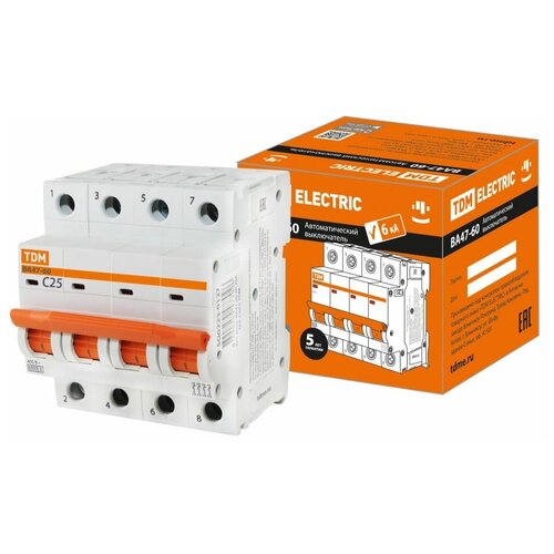 Автоматический выключатель TDM Electric ВА47-60 4P C25 А 6 кА SQ0223-0127