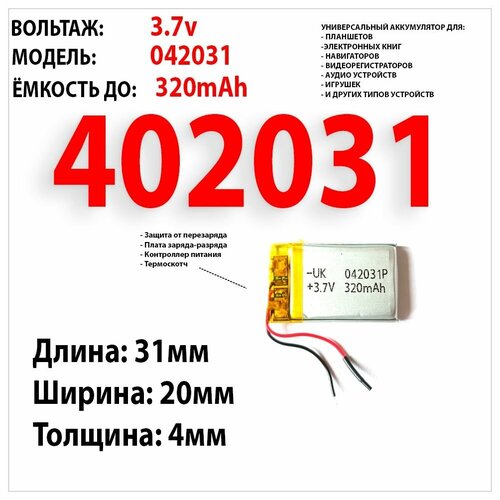 Аккумулятор для видеорегистратора TeXet DVR 701 (акб батарея) 3.7v вольт 320mAh 4x20x30 / подобранный по размерам