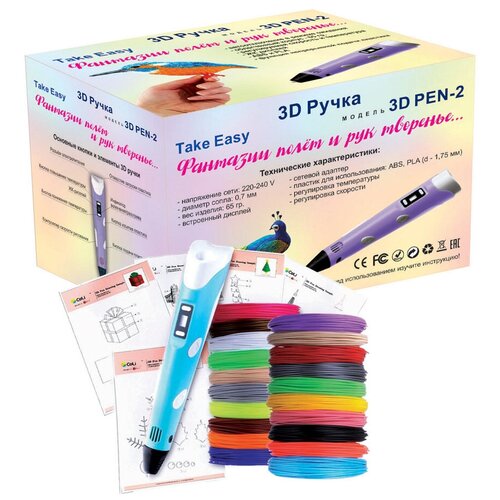 Набор для творчества, 3D ручка + трафарет + пластик PLA 20 цветов по 10 м + 10 игр (розовый) Spider .
