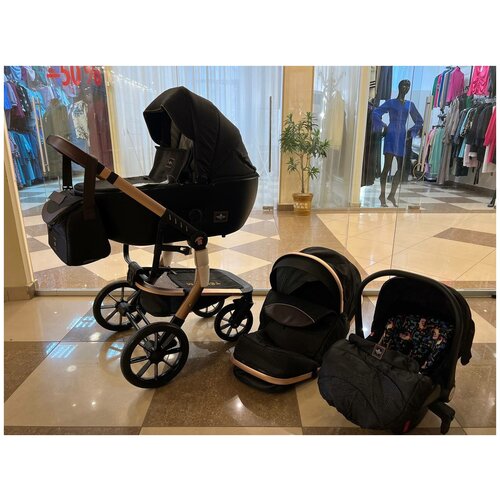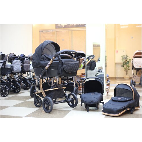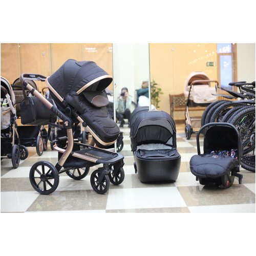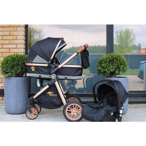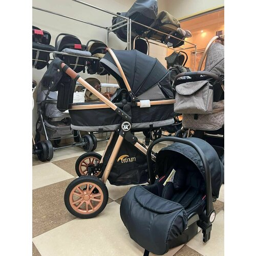Коляска 3в1 Teknum V91 трансформер с реверсивным блоком Для детей от 0 до 3 лет, черная с золотой рамой